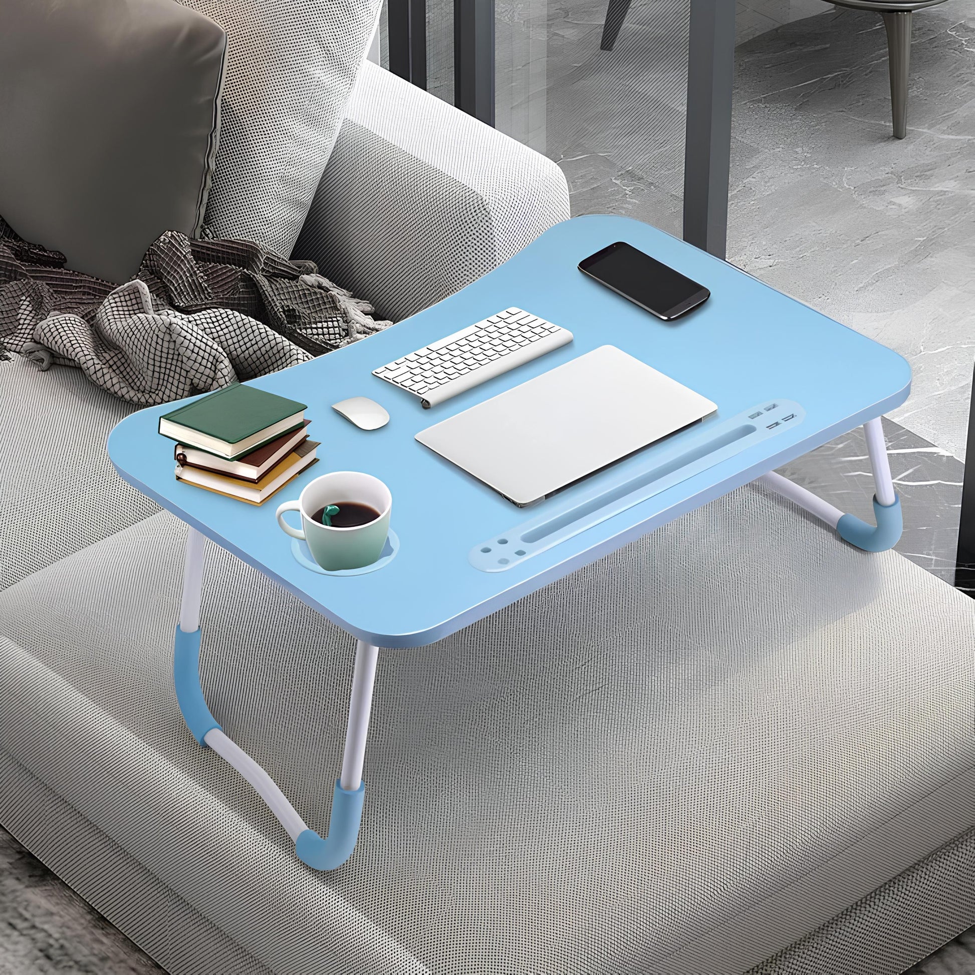Lightweight yet sturdy, this blue lap desk features USB ports and foldable legs — ideal for work, movies, or cozy mornings in bed.