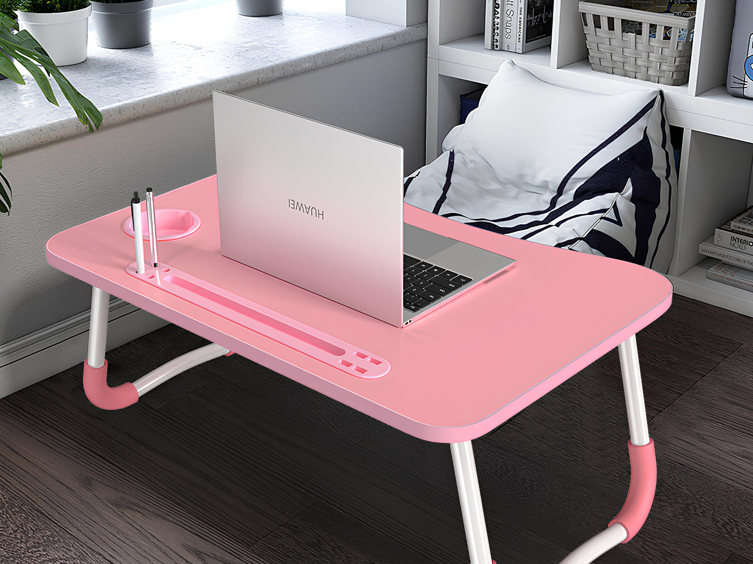 Soft pastel pink meets smart design. A cup holder, pen slot, and smooth edges make it perfect for studying, reading, or relaxing anywhere in style.